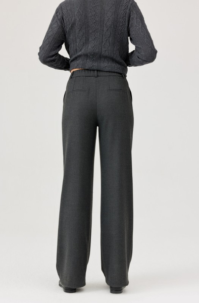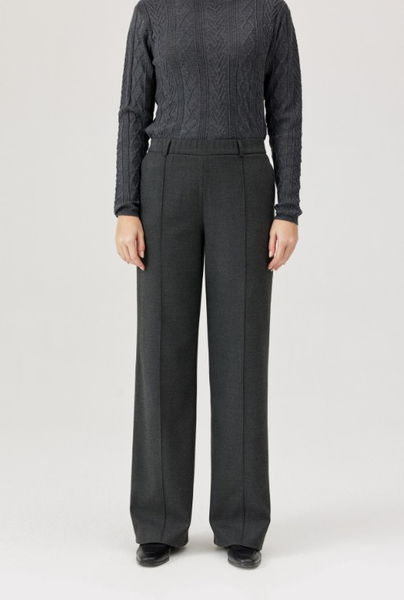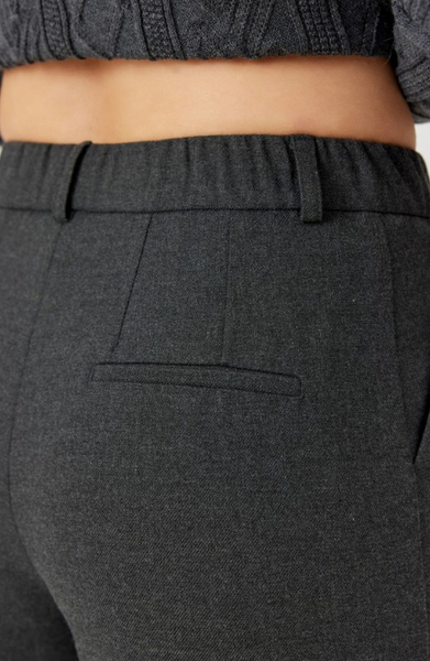Spodnie FÉRIA z elastycznym pasem – klasyka w nowoczesnym wydaniu. Eleganckie spodnie o prostym kroju, wykonane z gładkiej tkaniny w odcieniu grafitowej szarości. Model z wygodną, elastyczną talią i delikatnymi zakładkami z przodu zapewnia komfort noszenia i swobodę ruchów. Prosta nogawka optycznie wydłuża sylwetkę, a uniwersalny fason sprawdzi się zarówno w stylizacjach biurowych, jak i casualowych. Idealne w duecie z marynarką, klasyczną koszulą lub swetrem typu oversize.