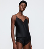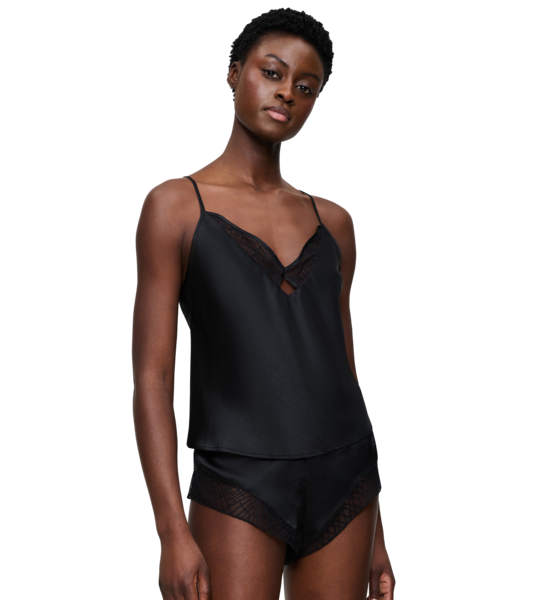 - Koszulka posiada wąskie regulowane ramiączka typu spaghetti.