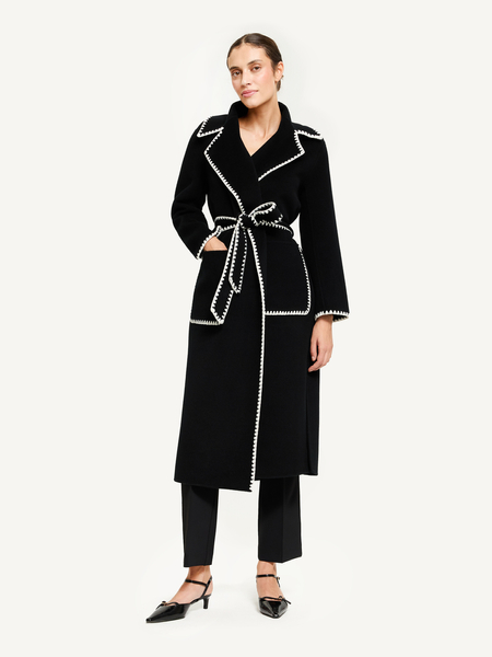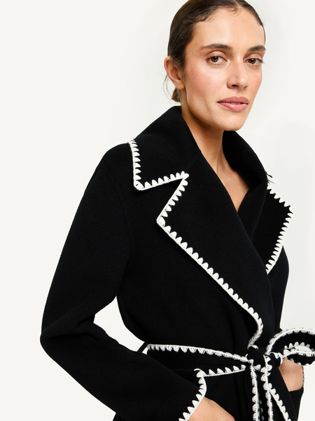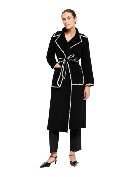 Wyjątkowe, kontrastowe obszycie w bieli dodaje mu nowoczesnego charakteru i sprawia, że nawet najprostsza stylizacja zyskuje wyrafinowany akcent. Prosty, nieco mniej dopasowany krój daje swobodę ruchów, a pasek pozwala podkreślić talię według uznania. To model, który świetnie odnajdzie się w zestawieniu z klasycznymi kozakami, eleganckimi spodniami czy sukienką midi.