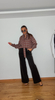 Fason z wysokim stanem i gładkim wykończeniem w pasie zapewnia schludny wygląd, bez zbędnych przeszyć czy zapięć na froncie. Nogawki zostały skrojone w prostym, lekko rozszerzanym kroju, dzięki czemu materiał układa się swobodnie i płynnie opada ku dołowi, wydłużając sylwetkę.