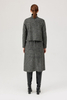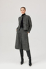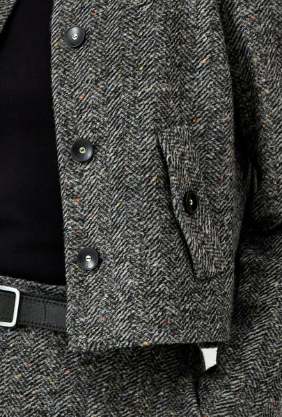 w ponadczasowy wzór jodełki w odcieniach czerni i szarości. Model zapinany jest