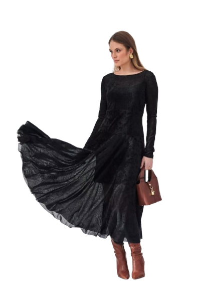 Czarna elegancka sukienka z welurowego tiulu to kwintesencja kobiecości.
