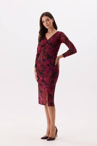 Sukienka Salko – kwiatowy wzór w odcieniach bordo i