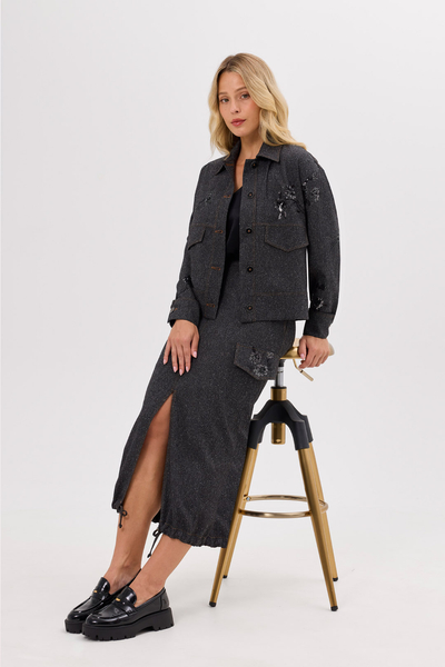 Kurtka Salko – grafitowa z cekinowymi aplikacjami