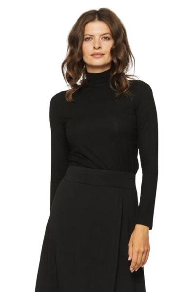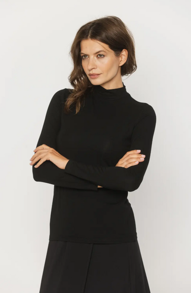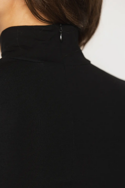 Ten czarny półgolf to must-have w każdej jesienno-zimowej garderobie. Prosty fason i dopasowany krój sprawiają, że świetnie sprawdzi się zarówno w codziennych, jak i bardziej eleganckich stylizacjach. Elastyczna dzianina z dodatkiem wiskozy zapewnia wygodę, miękkość i idealne dopasowanie do sylwetki, a długi rękaw dodaje funkcjonalności w chłodniejsze dni.