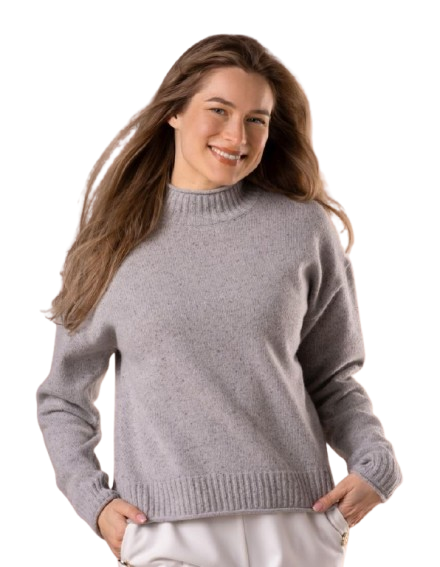 SOFT KNIT – Wełniany sweter o luźnym kroju z melanżowym odcieniu