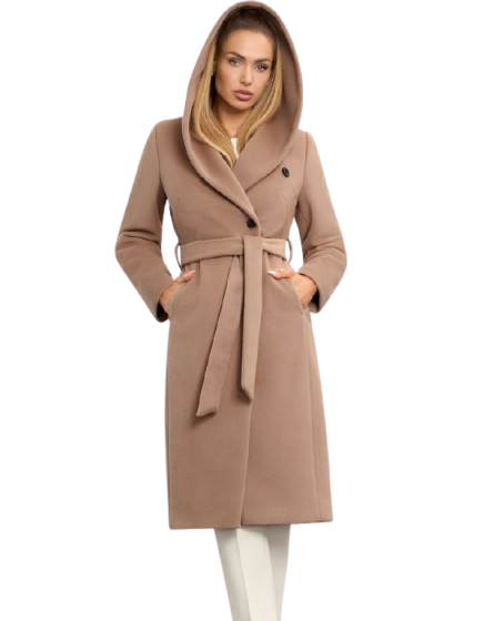 Płaszcz Zoe to idealny wybór dla kobiet, które chcą połączyć klasyczny szyk z komfortem codziennego noszenia. Dopasowany fason pięknie podkreśla sylwetkę, a miękki kaptur dodaje całości lekkości i zapewnia ochronę w chłodne dni. Pasek w talii pozwala modelować proporcje, tworząc kobiecą i harmonijną linię.