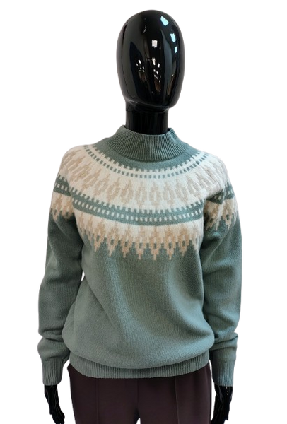 Wełniany sweter żakardowy z norweskim wzorem – linia IMMAGINE