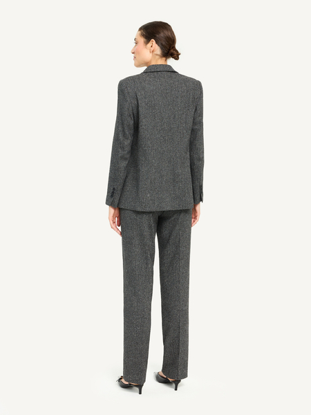 Dzięki obecności wełny i jedwabiu tkanina jest przyjemna w dotyku, a jednocześnie trwała i szlachetna. To ponadczasowy element garderoby, który z łatwością połączysz z różnymi stylizacjami.