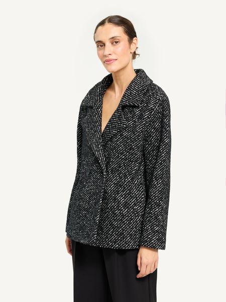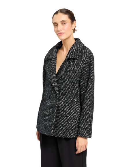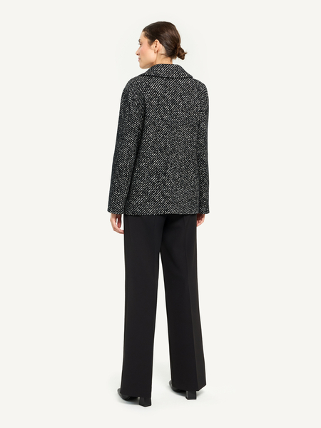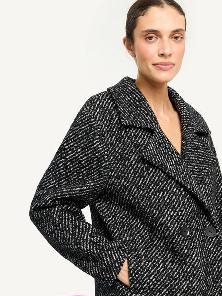 Dzięki wyrazistemu wzorowi i stonowanej kolorystyce kurtka świetnie odnajdzie się w stylizacjach do pracy, na spotkanie czy codzienne wyjście. Pasuje zarówno do spodni z szeroką nogawką, jak i wąskich jeansów, tworząc zestawy z charakterem.