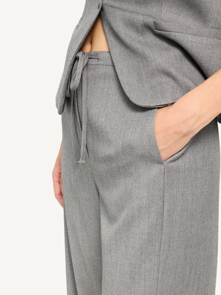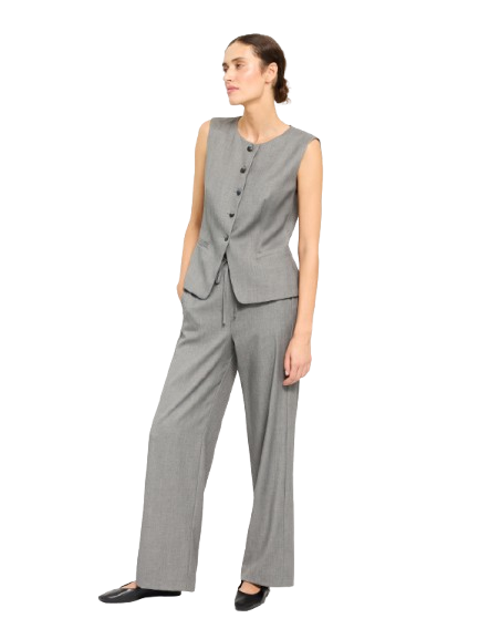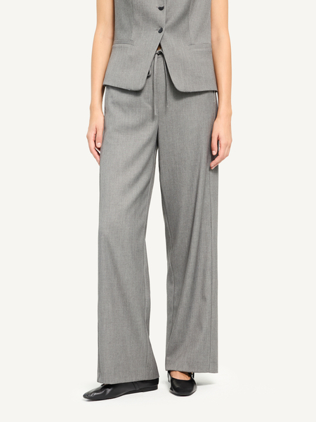 Stylowe spodnie w popielatym odcieniu to połączenie wygody i klasycznej elegancji. Luźny krój i szerokie nogawki sprawiają, że są idealne na co dzień, jak i do pracy w biurze.