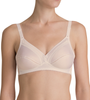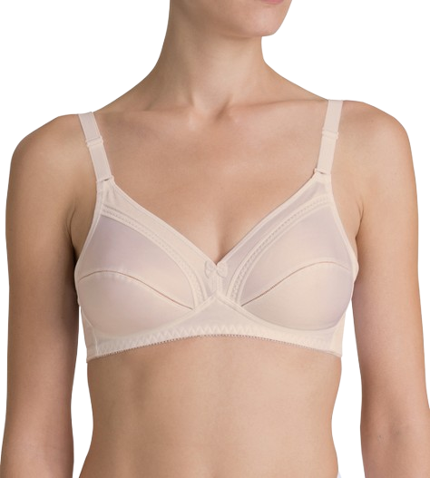 Biustonosz z miękkimi miseczkami bez fiszbin, delikatnie modelujący biust. Miseczki posiadają poziome cięcie. Model wzmocniony elastycznymi fiszbinami bocznymi. Pomiędzy miseczkami ozdobna kokardka. Ramiączka regulowane z przodu.
