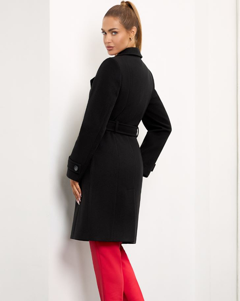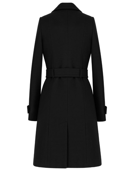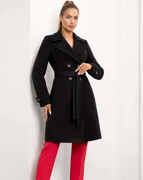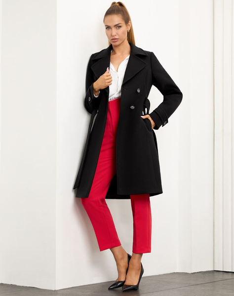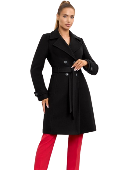 Krój: dopasowany, dwurzędowy, z paskiem w talii