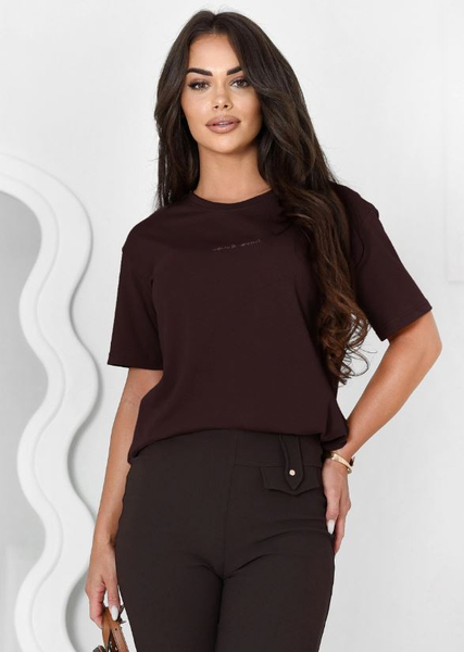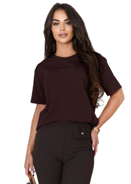 Damski t-shirt o klasycznym kroju, wykonany z miękkiej, gładkiej dzianiny o jednolitej strukturze. Materiał jest przyjemny w dotyku, lekko elastyczny i dobrze dopasowuje się do sylwetki, zapewniając komfort noszenia.