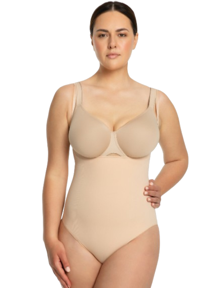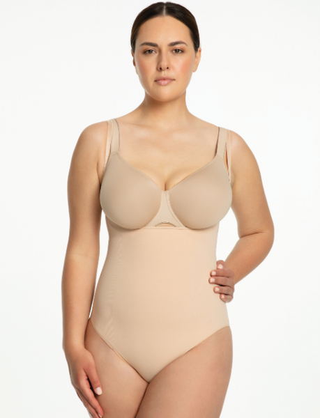 - Open bust (pod biust) – body nie spłaszcza piersi, daje możliwość noszenia dowolnego biustonosza i dopasowania go do stroju.