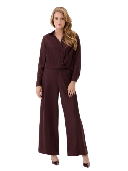 Spodnie z Lejącej Tkaniny w Kolorze Burgundu