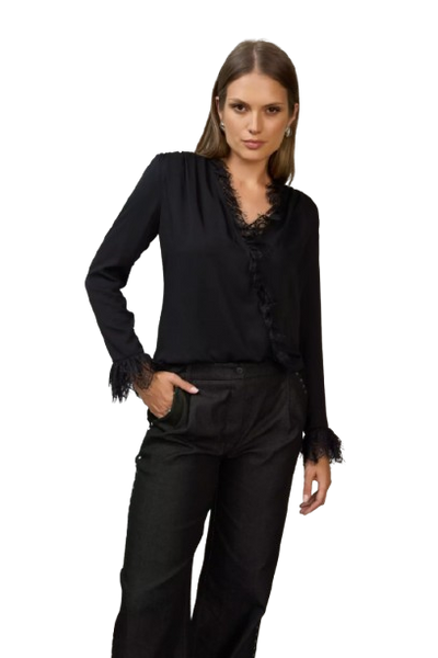 7689-16 EZURI Czarna bluzka z koronką LIVIA
