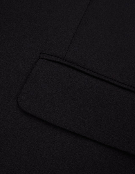 Klasyczny, czarny model z jednym guzikiem to esencja ponadczasowego stylu. Prosty, dopracowany krój podkreśla sylwetkę i pozwala na uniwersalne stylizacje od biura po wieczorne wyjścia. Ta marynarka to baza szafy kapsułowej.