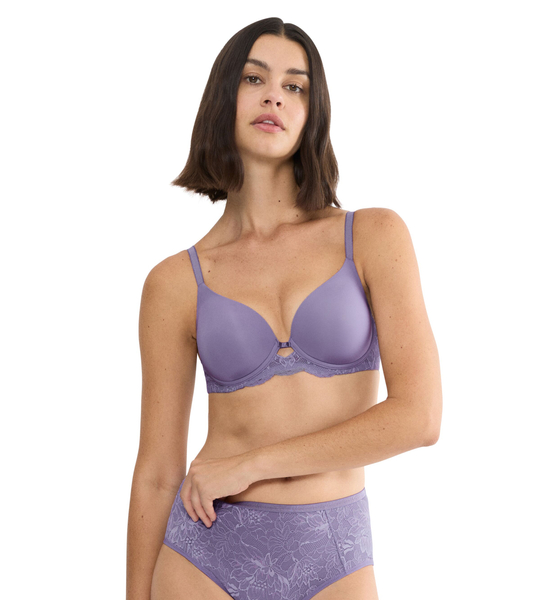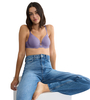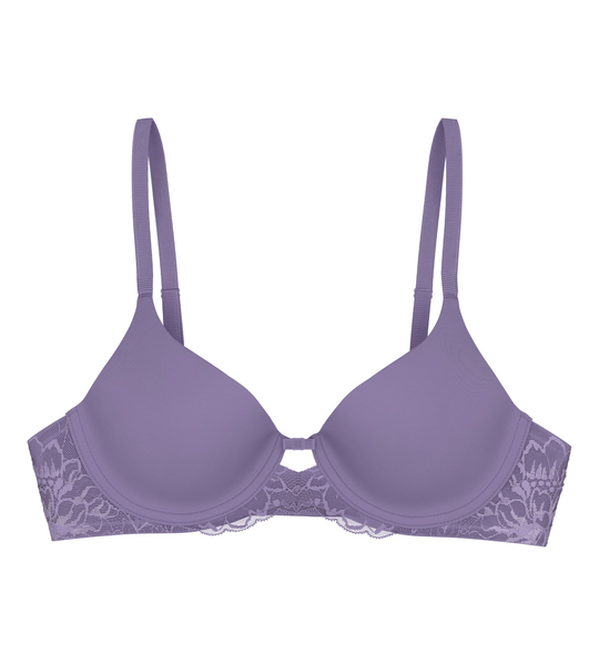 - Wykończenie: Obwód biustonosza oraz dół miseczek ozdobione są delikatną, płaską koronką o kwiatowym motywie, która dodaje całości subtelnego uroku, jednocześnie nie odznaczając się pod ubraniem. Tył jest również podszyty koronką, co dodaje kobiecości.