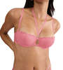 - Wsparcie i ramiączka: Posiada lekkie, elastyczne fiszbiny typu Comfort Wire, które dopasowują się do ruchów ciała bez ucisku. Ramiączka są zazwyczaj podwójne i w pełni regulowane, co dodaje elegancji i zapewnia optymalne dopasowanie.
