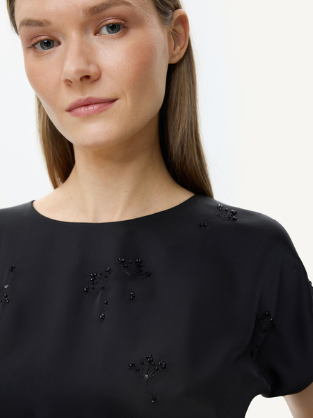 • 50451 KMX Czarna bluzka z delikatnym haftem