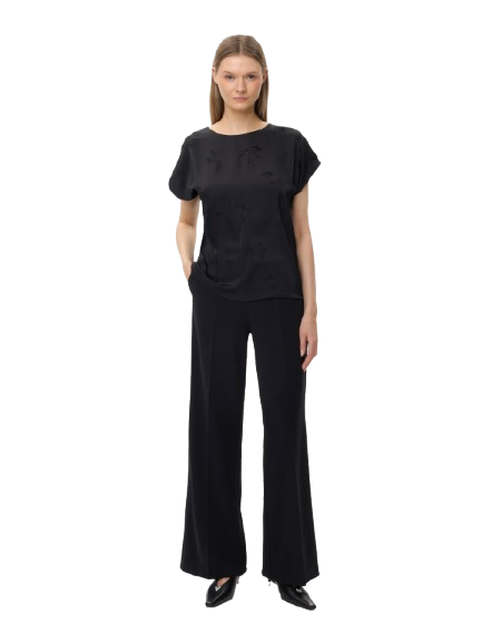 • 80931 KMX Czarne spodnie z szeroką nogawką i elastyczną talią