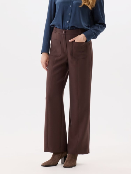 Spodnie damskie o prostym kroju – kolor gorzkiej czekolady.