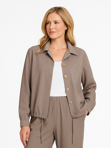 wierzchnie lub rozpiętą, w zestawieniu z topem i ulubionymi spodniami. Neutralny