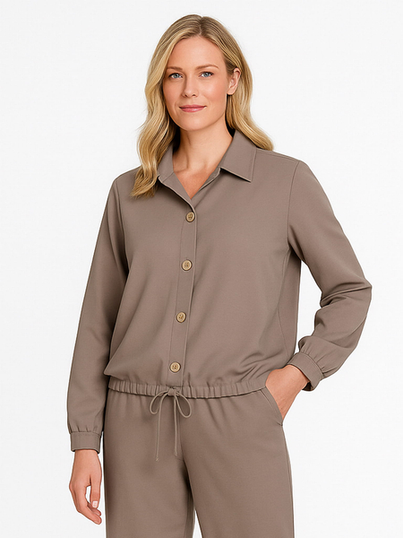 zakończone mankietem oraz zapięcie na guziki z przodu. Luźny, swobodny krój