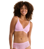 Biustonosz z linii ZERO Feel Bliss sprawia, że czujesz się wyjątkowo każdego dnia, gwarantując bezszwowy, niezakłócony komfort charakterystyczny dla linii ZERO Feel w połączeniu z piękną koronką rozciągającą się w zakresie 360°. Swobodnie wycięta pofalowana krawędź doskonale przylega do skóry.