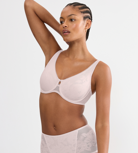 - Prasowana koronka i płaskie wykończenie sprawiają, że biustonosz nie odznacza się pod ubraniem.