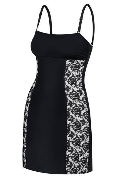 specjalnej, "lejącej się" dzianiny. Ramiączka odpinane i o regulowanej długości.