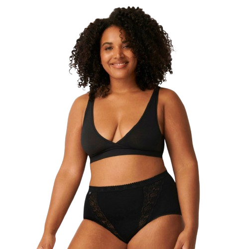 Majtki typu maxi  zdobione wstawkami z elastycznej koronki, z wyjątkowo miękkiego materiału.