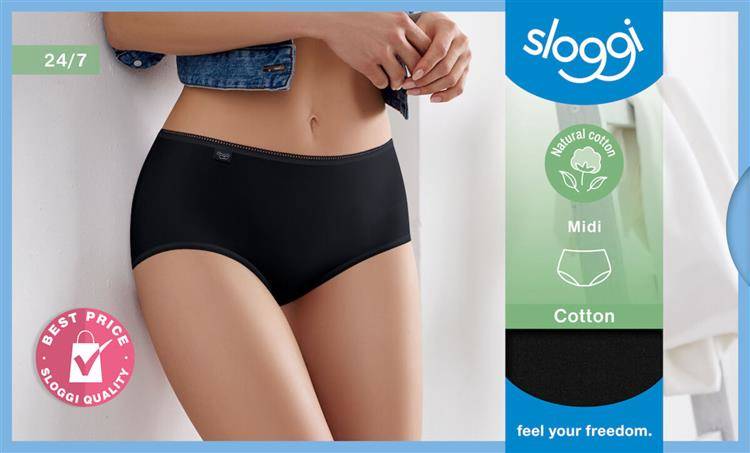 - Sloggi 24/7 Cotton Midi to majtki o pełniejszym, wyższym fasonie typu midi