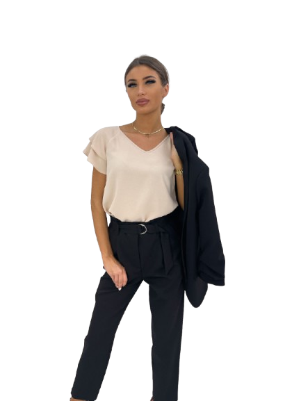 pasek z tego samego materiału ze srebrną okrągłą klamrą