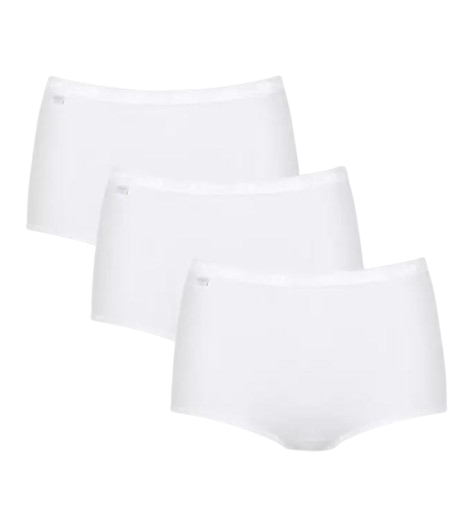 Sloggi Basic+ Maxi 3P to trójpak majtek w kolorze BIAŁYM wykonanych z najwyższej jakości bawełny. Idealne dla osób o bardzo wrażliwej skórze, które mają problem ze znalezieniem bardzo delikatnej niepodrażniającej bielizny.