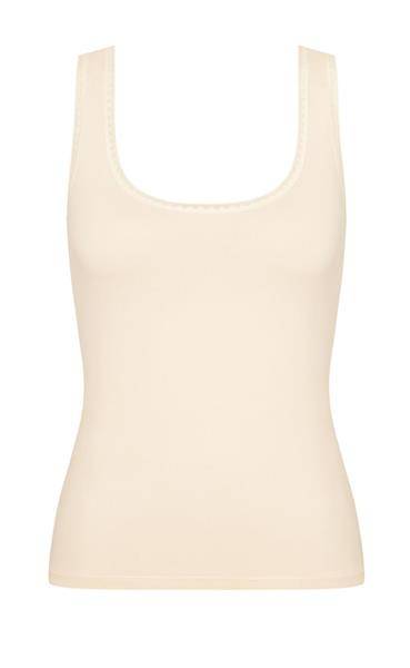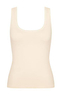 - Modelka ma na sobie koszulkę typu tank top w rozmiarze.