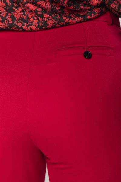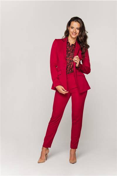 Eleganckie spodnie w klasyczny kant to must-have w każdej garderobie. Wykonane z połączenia poliestru, wiskozy i elastanu, zapewniają komfort noszenia, a jednocześnie zachowują nienaganny wygląd przez cały dzień. Bordowy kolor dodaje im charakteru, a kanty wzdłuż nogawek optycznie wydłużają sylwetkę, nadając jej smukły wygląd. Te spodnie doskonale komponują się zarówno z eleganckimi koszulami, jak i prostymi topami, tworząc stylowe, ponadczasowe zestawy na różne okazje.