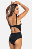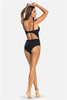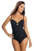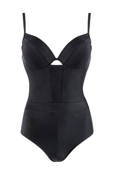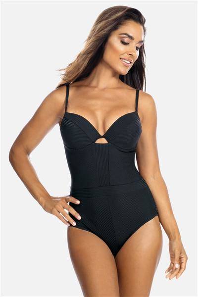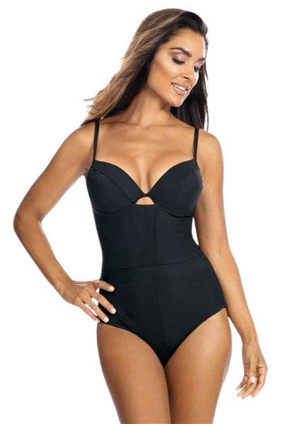Elegancki czarny kostium kąpielowy jednoczęściowy push-up w prążki