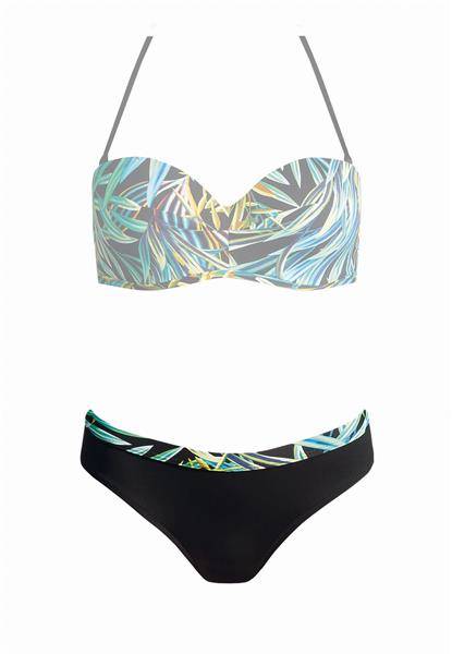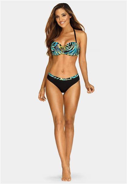Egzotyczne motywy związane z naturą oraz intensywne, żywe barwy - to właśnie linia Tropical. Soczyste kolory zielono - żółte w towarzystwie turkusu i pomarańczu są m.in. kolorami lasu deszczowego. Czarny odcień dodaje elegancji i lekko tonuje całość, dzięki czemu stroje kąpielowe z tej linii owiane są tajemniczością dżungli. Dzięki naszym kostiumom nie musisz podróżować w odległe kraje, aby zaczerpnąć egzotycznych wakacji. Motyw tropikalnych liści doskonale wpisuje się w rajski klimat pełen słońca.