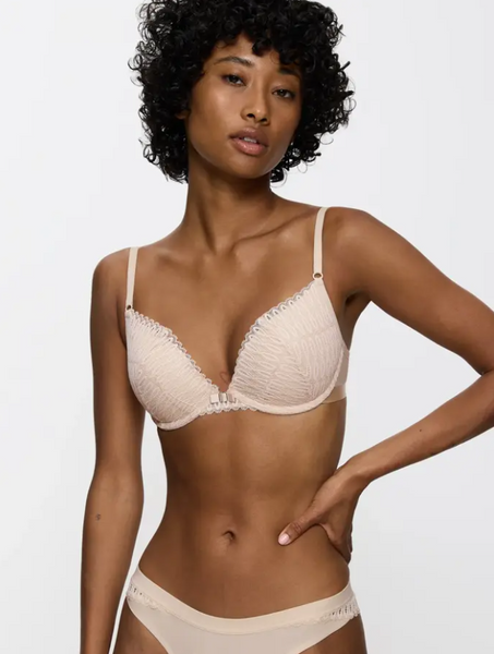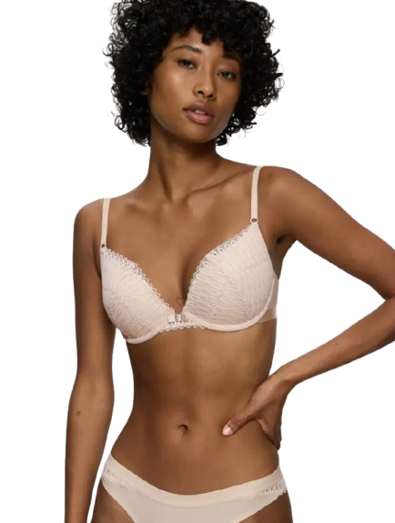 - Biustonosz ze zintegrowanymi wkładkami podkreśla kobiecy dekolt
