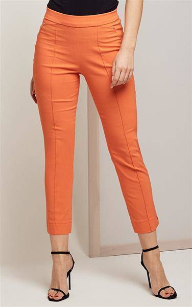 - nogawki z pionowymi, wydłużającymi przeszyciami, w kant