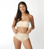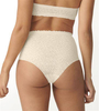 Modelka ma na sobie figi z wysokim stanem w rozmiarze S.
