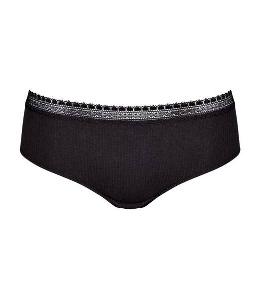 - Figi damskie o wygodnym kroju hipster z szerszą partią boczną i lekko obniżonym stanem.