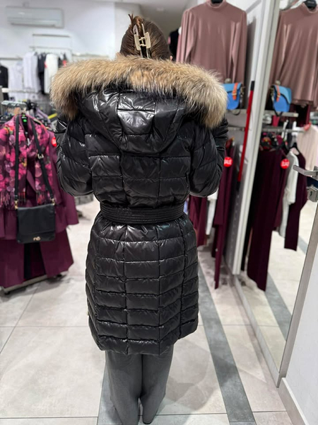 Kaptur został obszyty naturalnym futrem jenota,dlatego kolor i objętość może się różnić.