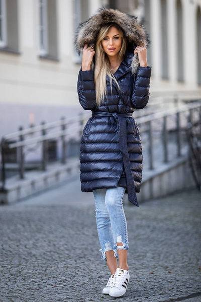 Płaszcz damski wykonany z najwyższej jakości materiału nieprzepuszczającego wilgoci oraz wiatru-ocieplany kaczym puchem.