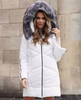 jej o supermodną w ostatnich sezonach kurtkę puchową z kapturem. Biała zimowa