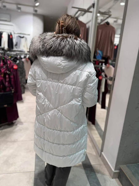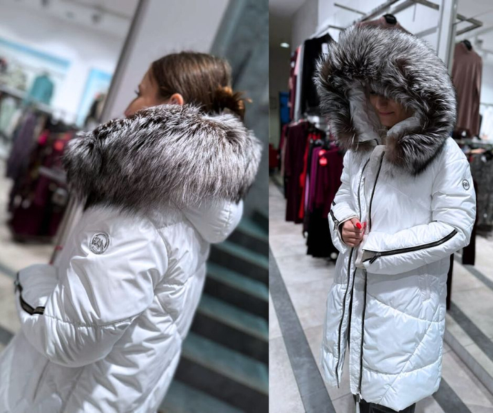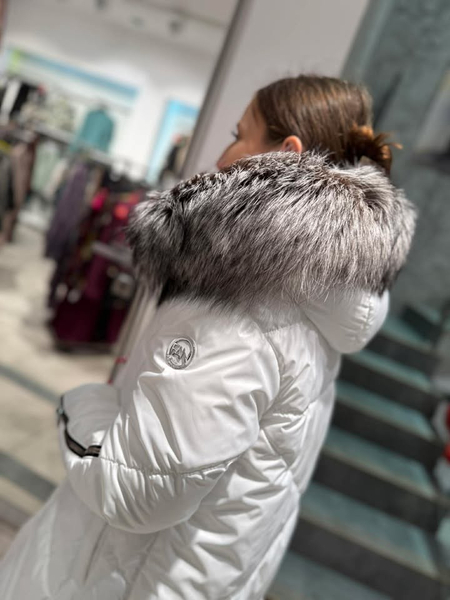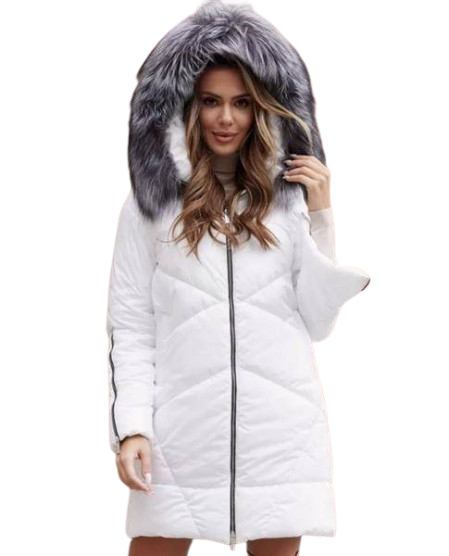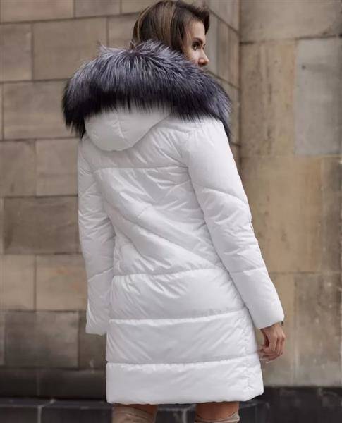 jej o supermodną w ostatnich sezonach kurtkę puchową z kapturem. Biała zimowa