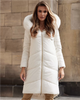i szarości? Prezentowana tutaj mleczna kurtka puchowa z kapturem obszytym
