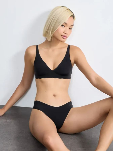 Stringi o fasonie biodrówek i wygodnych, szerszych bokach. Bezszwowe wykończenie w pasie, boków i wycięć na nogi. Z ultralekkiej i cienkiej tkaniny D-ZERO o jedwabiście gładkiej powierzchni.